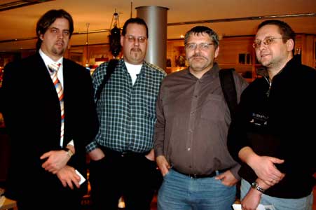 Nach dem Symposium Gruppenfoto mit Marcus Stein und den Mitgliedern des 1.Deutschen Napoleonischen Spiel Club Gerd Wägner, Martin Huschka und Holger Barthen (von links nach rechts) |