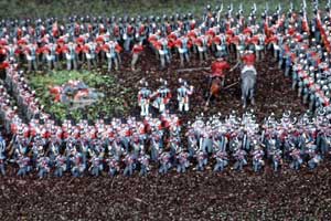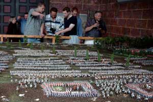 Zur feierlichen Eröffnung des Großdioramas Die Schlacht von Waterloo trafen sich am 22.06.2003 die Clubmitglieder Claus, Dirk, Holger und Norbert in Celle. Wir haben uns auch sehr gefreut, Jens vom "Freundeskreis Historische Miniaturfigur" persönlich kennenzulernen. Vielen Dank an Jens für die Genehmigung zur Veröffentlichung der Fotos. Wer das Diorama nicht kennt, sollte es unbedingt aufsuchen.