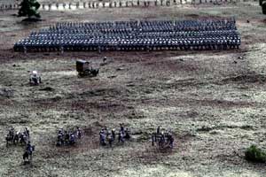 "Was tut er denn da! Wie kann Ney ohne Infanterie angreifen !" Napoleon bei Belle Alliance | Die Engländer haben Karrees gebildet und erwarten den Angriff |